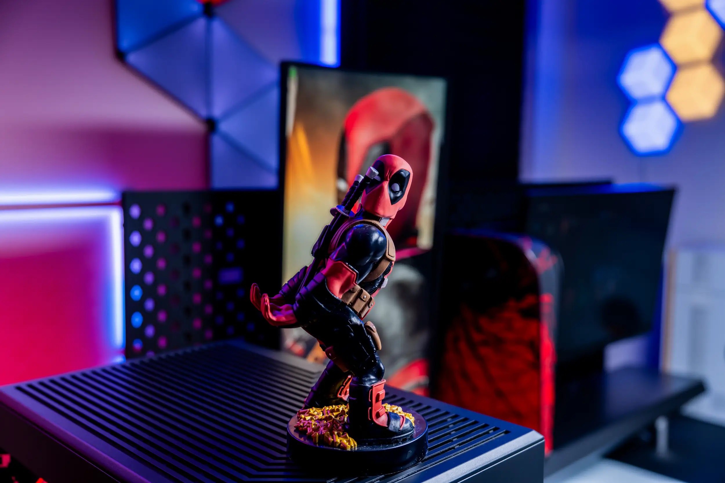 Szalony i bezczelny zabójca Marvela Deadpool dołącza do naszej niezwykle popularnej serii Cable Guys. Wykazując się zdumiewającą siłą i nadludzkimi zdolnościami, Deadpool jest przyczajony i gotowy do uwolnienia swoich umiejętności ninja. Umieść na jego plecach większość rodzajów kontrolerów do gier, smartfonów lub czegokolwiek innego, co możesz zmieścić, a on to ochroni. Tylko bez wygłupów, OK?