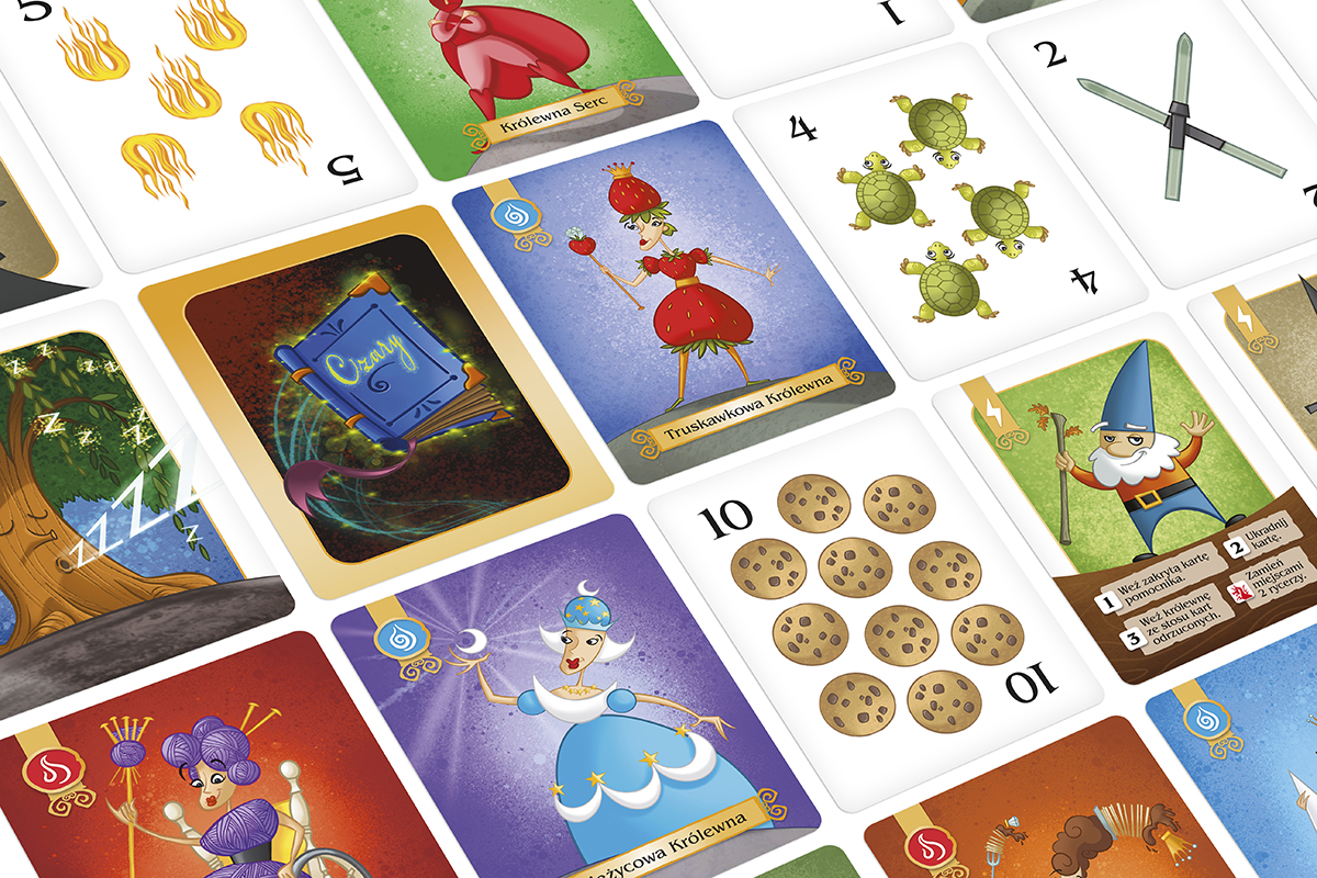 - Wykonanie akcji z wyłożonych kart. Zebranie odpowiednich zestawów pozwoli dobierać cenne karty pomocników, budzić uśpione królewny i ratować książąt.