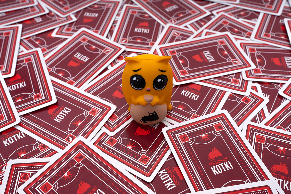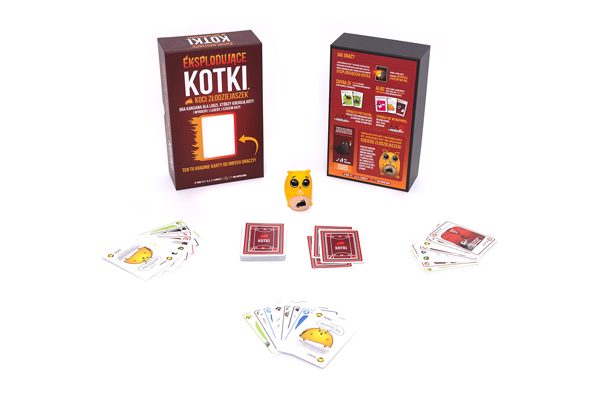Eksplodujące Kotki to napędzana kociakami, całkowicie bezpieczna odmiana rosyjskiej ruletki. Podczas rozgrywek gracze co turę dobierają po jednej karcie, aż do momentu, gdy ktoś wyciągnie eksplodującego kotka – taki nieszczęśnik wybucha i ginie, a tym samym kończy grę. Na szczęście w talii są też karty, dzięki którym możemy odwlekać nieuniknione (a raczej przerzucić je prosto na przeciwników). Aby wygrać, musimy mądrze zarządzać kartami, które uda nam się zdobyć.