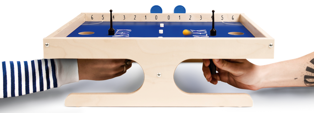 KLASK to wyjątkowa, ekscytująca i jedyna w swoim rodzaju gra z użyciem magnesów. Podczas zabawy mamy jeden cel: umieścić kulkę w bramce przeciwnika! Każdy z graczy dysponuje własnym młoteczkiem, którym steruje spod planszy za pomocą specjalnego magnesu. W ten sposób przepychamy kulkę aż do zdobycia punktu. Ale uwaga! Na stole znajdują się też pułapki w postaci białych magnesów – jeśli 2 lub 3 przyczepią się do Twojego młoteczka, przeciwnik zdobędzie cenny punkt!