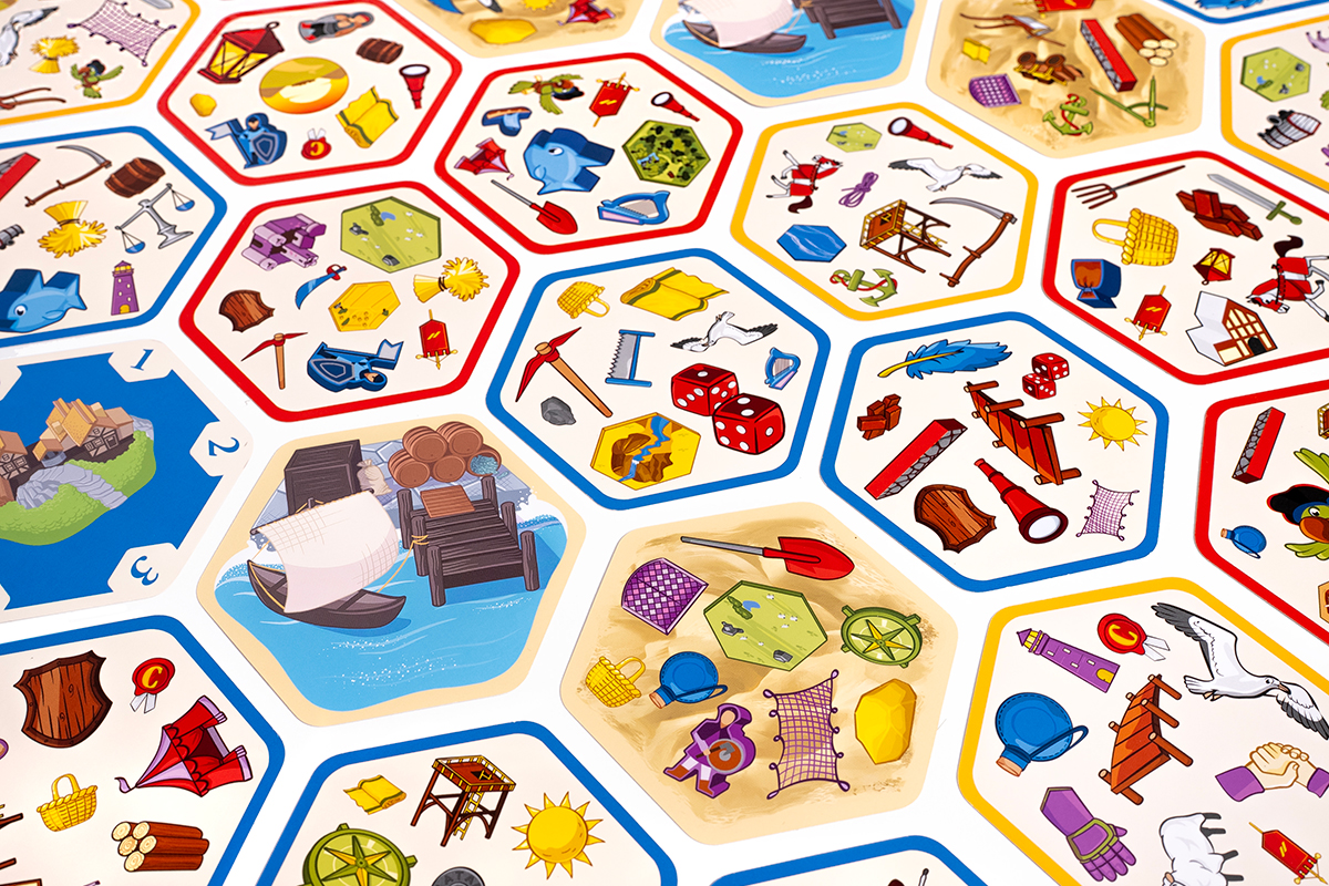 - To nie lada gratka dla miłośników Catanu! Na kartach znajdziemy symbole takie jak zwierzęta, zasoby, a nawet charakterystyczne pionki!