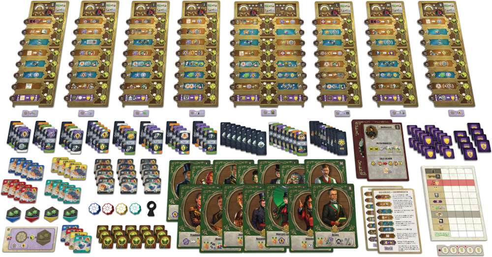 - 8 zamienników startowych płytek akcji (do gry z dodatkiem Nucleum: Rada postępu)