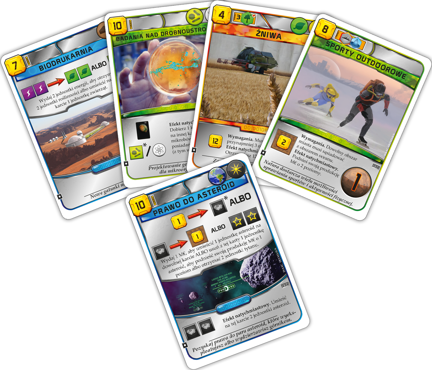 Zwiększ swoje możliwości inwestowania w wielkoskalowe projekty kosmiczne, połącz rozwój z pozyskiwaniem cennego materiału biologicznego i wykorzystaj nowoczesne sporty outdoorowe jako źródło zarobku. Terraformacja Marsa: Zestaw dodatkowy #6 i #7 to 5 nowych kart projektów, które czekają na śmiałych inwestorów!