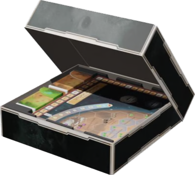 Każdy z dodatków do Terraformacji Marsa ma swoje własne opakowanie i bezpieczne miejsce na Twojej półce, a mapy po rozfoliowaniu leżą gdzie popadnie i zbierają kurz? Nadszedł czas, by coś z tym zrobić! Terraforming Mars: Map Box to praktyczne pudełko, w którym możesz schować wszystkie dodatkowe mapy. W środku znajdziesz też 2 pudełka, które w sumie pomieszczą do 100 zakoszulkowanych kart – na przykład te z pojedynczych Zestawów dodatkowych!