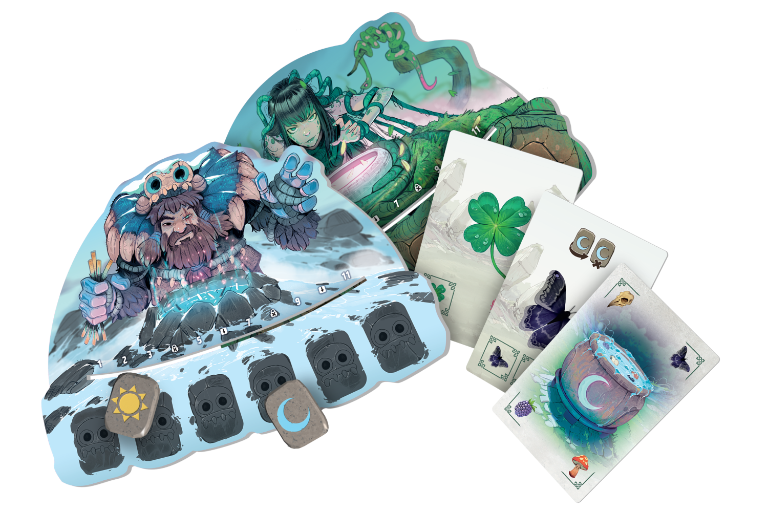 • Podstawowy mechanizm gry jest bardzo prosty, dzięki czemu z łatwością zaprosimy do stołu nowe osoby. Do wykorzystania mamy jeden zasób w postaci dwustronnych żetonów run. Zarządzanie runami będzie kluczowe dla zdobywania upatrzonych kart.