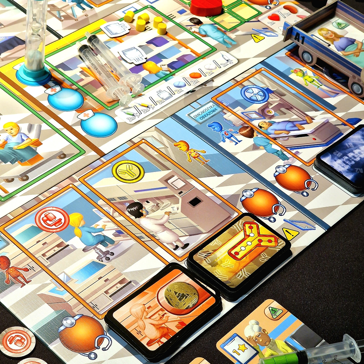 Ostry Dyżur to wyjątkowa, wypełniona zabawnymi wyzwaniami i wymagającymi decyzjami gra, która świetnie sprawdzi się na stole zarówno początkujących jak i doświadczonych graczy.