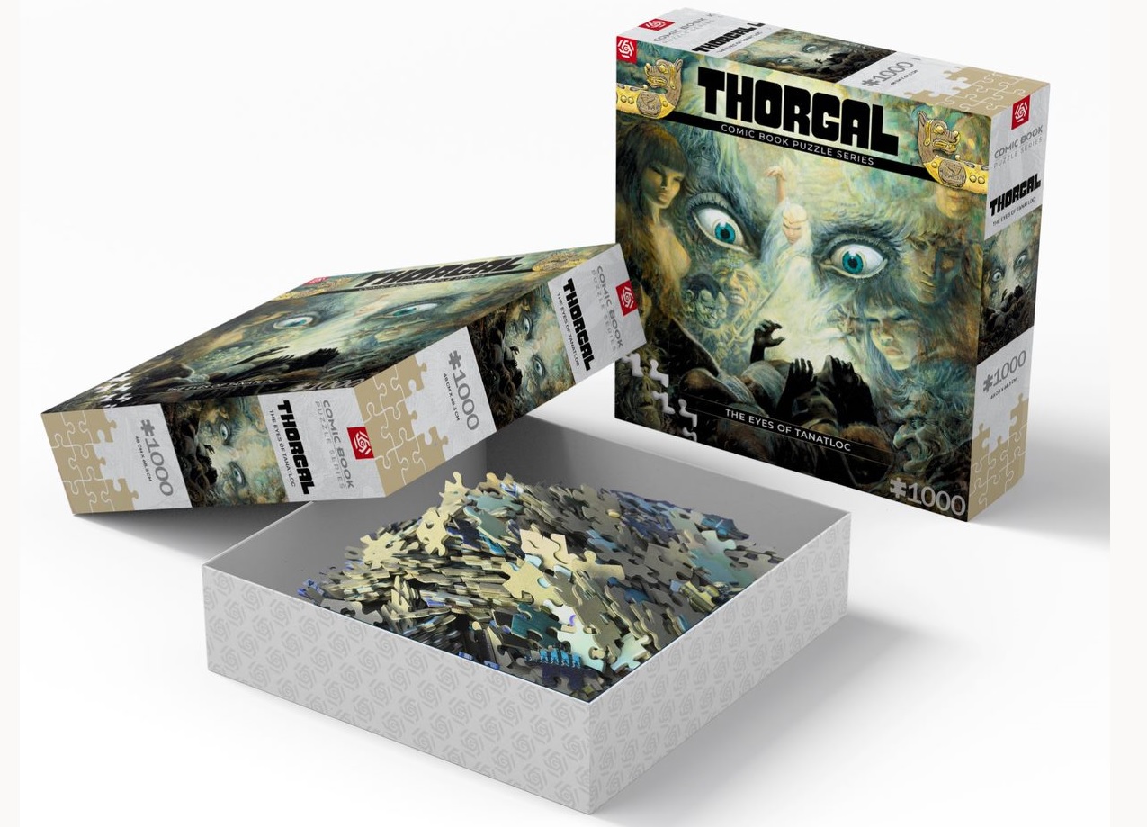 Wszyscy którzy poznali kultowe komiksy Thorgala wiedzą, że to małe dzieła sztuki. My też to wiemy, dlatego wzorem „Oczy Tanatloca”, który zdobi 11 tom serii komiksów o Thorgalu, rozpoczynamy naszą nową serią puzzli Comic Book. Wyjątkowa dbałość o detale, piękna, dopracowana kreska oraz znajdujące się w centralnej części hipnotyzujące spojrzenie sprawiają, że nie można oderwać wzroku. Długie wpatrywanie się wywołuje mieszane uczucia, połączenie dziwnego niepokoju i obecności ukrytej siły. Może to sam Tanatloc zaczyna na nas spoglądać?