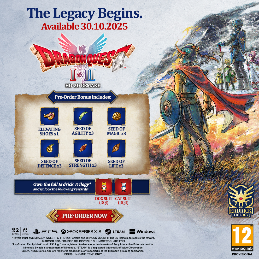 Możliwe jest odebranie tych nagród także po zagraniu w DRAGON QUEST III HD-2D Remake po rozpoczęciu gry w DRAGON QUEST I & II HD-2D Remake.
