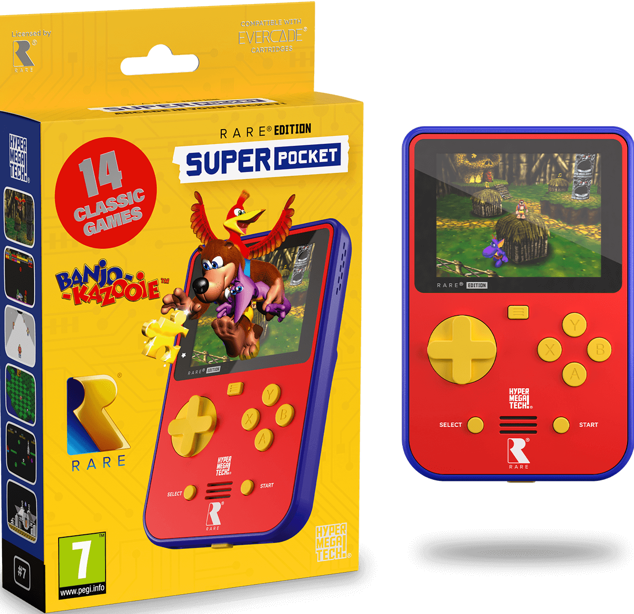 Noś w kieszeni automaty z lat 80. dzięki HyperMegaTech! Super Pocket Rare Edition! Konsolka zawiera 15 konsolowych i komputerowych hitów brytyjskiego developera, a wśród nich BANJO -KAZOOIE, BLAST CORPS, BATTLETOADS i wiele innych.