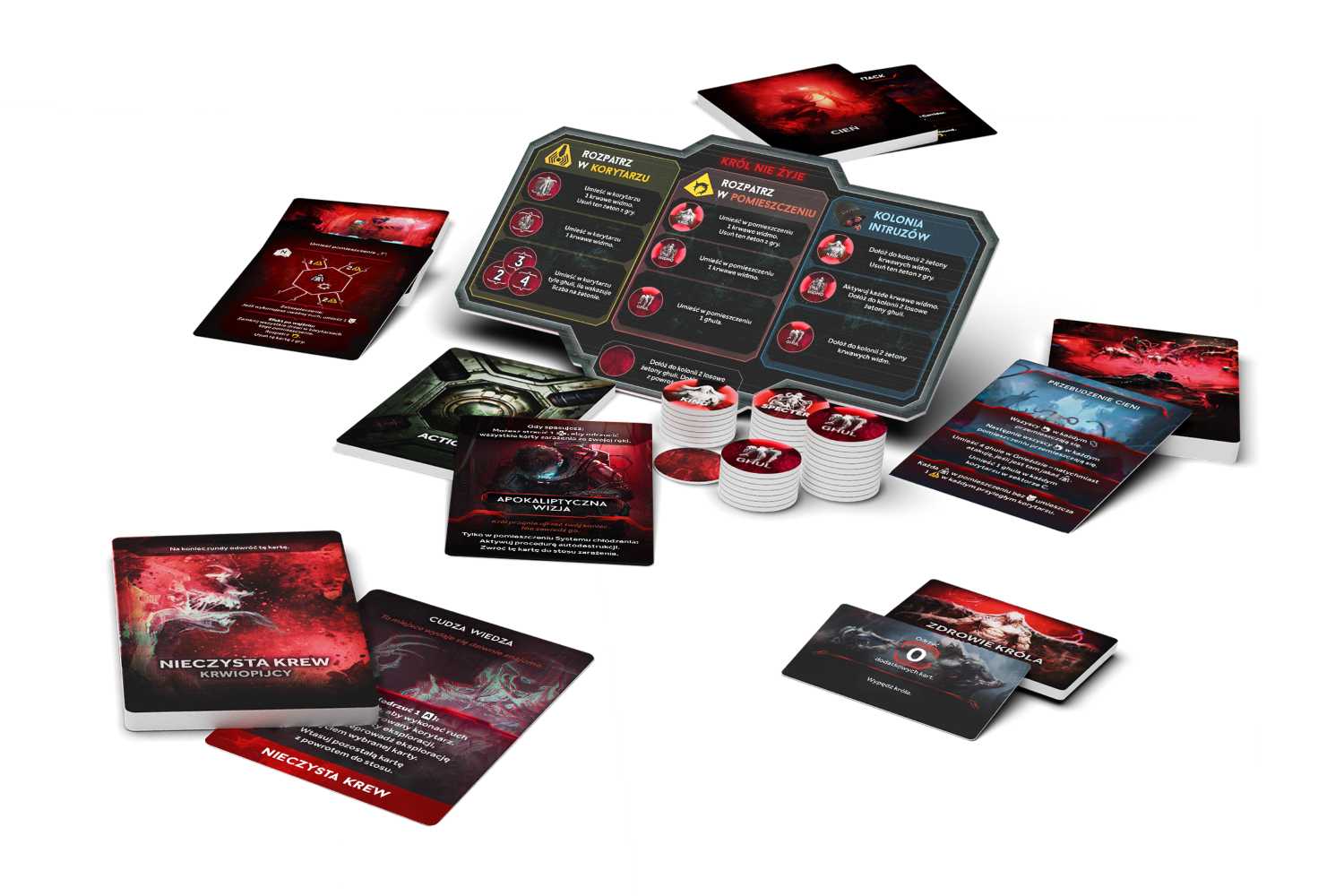 Przygotuj się na walkę, w której każdy Twój ruch może się okazać ostatnim! Nemesis: Odwet - Krwiopijcy to rozszerzenie wprowadzające przerażającą rasę intruzów przypominających wampiry. Te przebiegłe istoty w mrocznych zakamarkach statku wykorzystują parapsychiczne zdolności, aby manipulować umysłami postaci i przeobrażać Twoich sojuszników we wrogów. W rozgrywce przeciw nim ruch po mapie staje się bardziej nieprzewidywalny, a współpraca z innymi graczami jest utrudniona. Z drugiej strony król krwiopijców może przekazać specjalny dar. Kto z Was będzie miał odwagę, żeby go przyjąć?