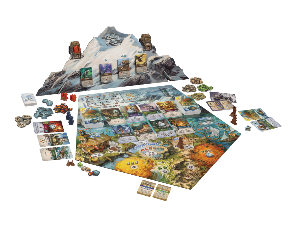 - różne dodatkowe żetony (śnieg, ogień, konary brzozy, kępki mchu, grudki miedzi, żołędzie, punkty, żetony Łapy)