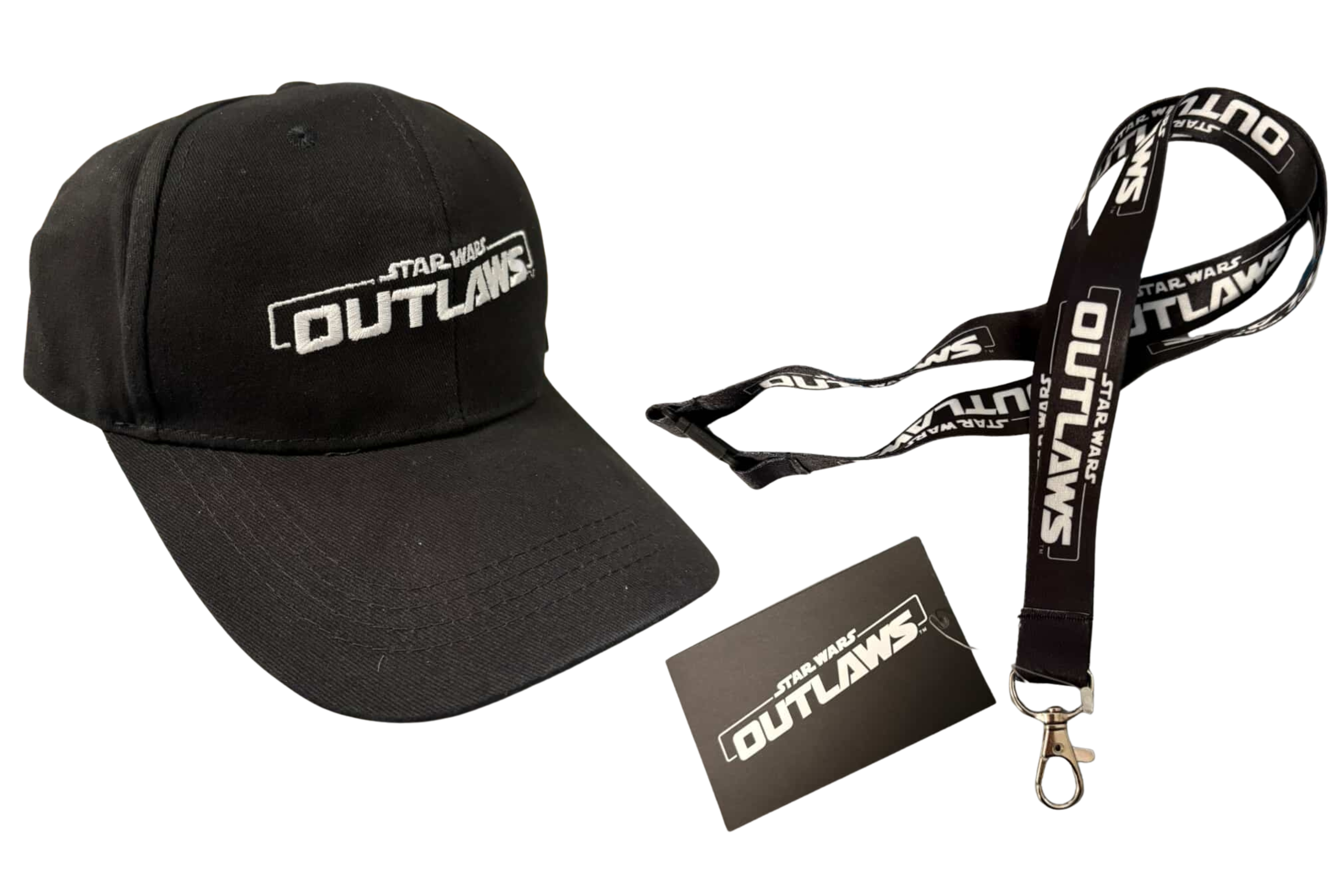 Zestaw zawiera grę Star Wars Outlaws na PlayStation 5, czapkę z daszkiem Star Wars Outlaws oraz smyczkę