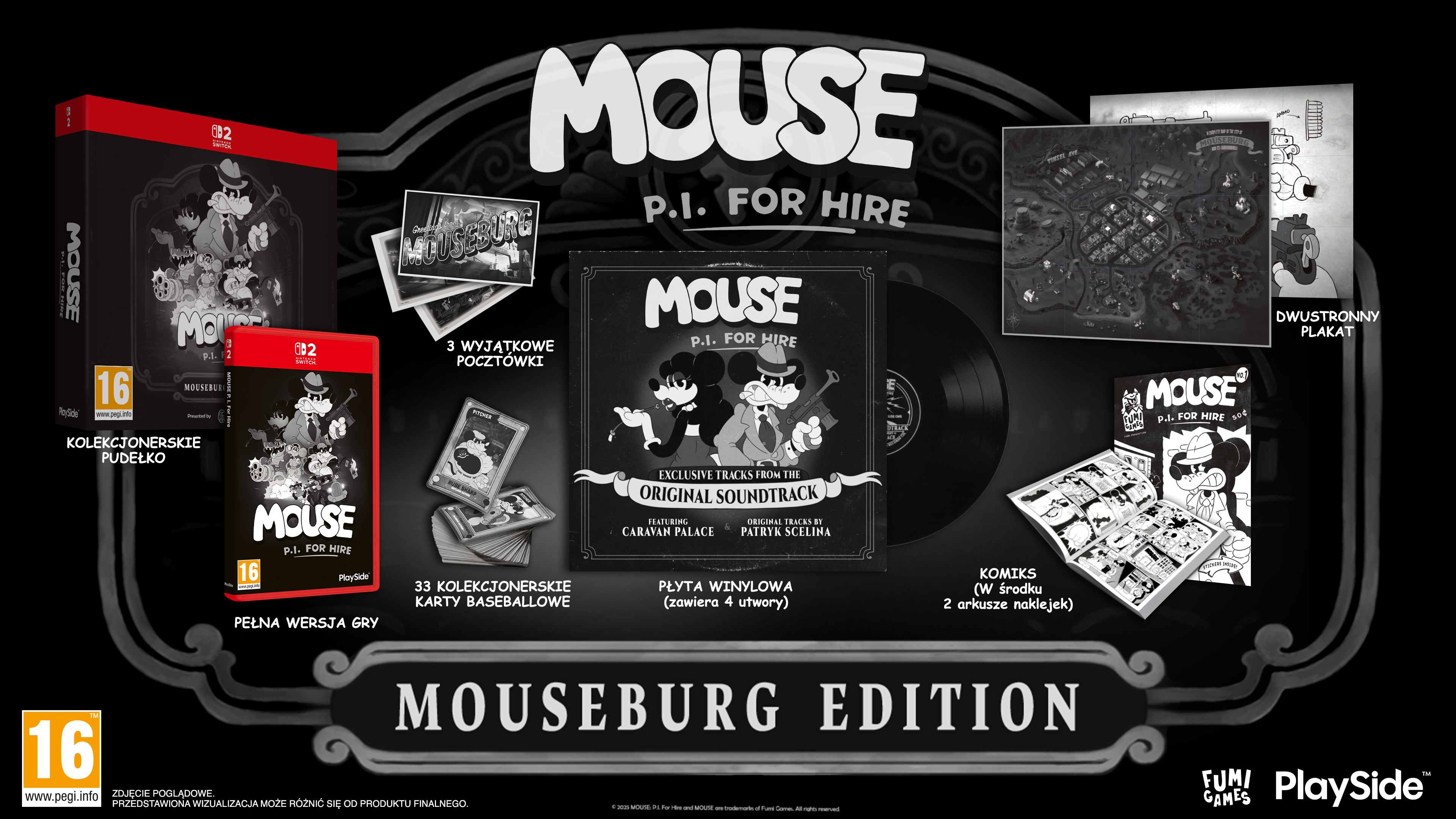 • Gra wideo (płyta dla PlayStation 5 i Xbox Series X, kartridż do Nintendo Switch 2 oraz kod w pudełku na PC), zawierająca wszystkie treści Mouseburg Edition, zapakowane w kolekcjonerskie pudełko.