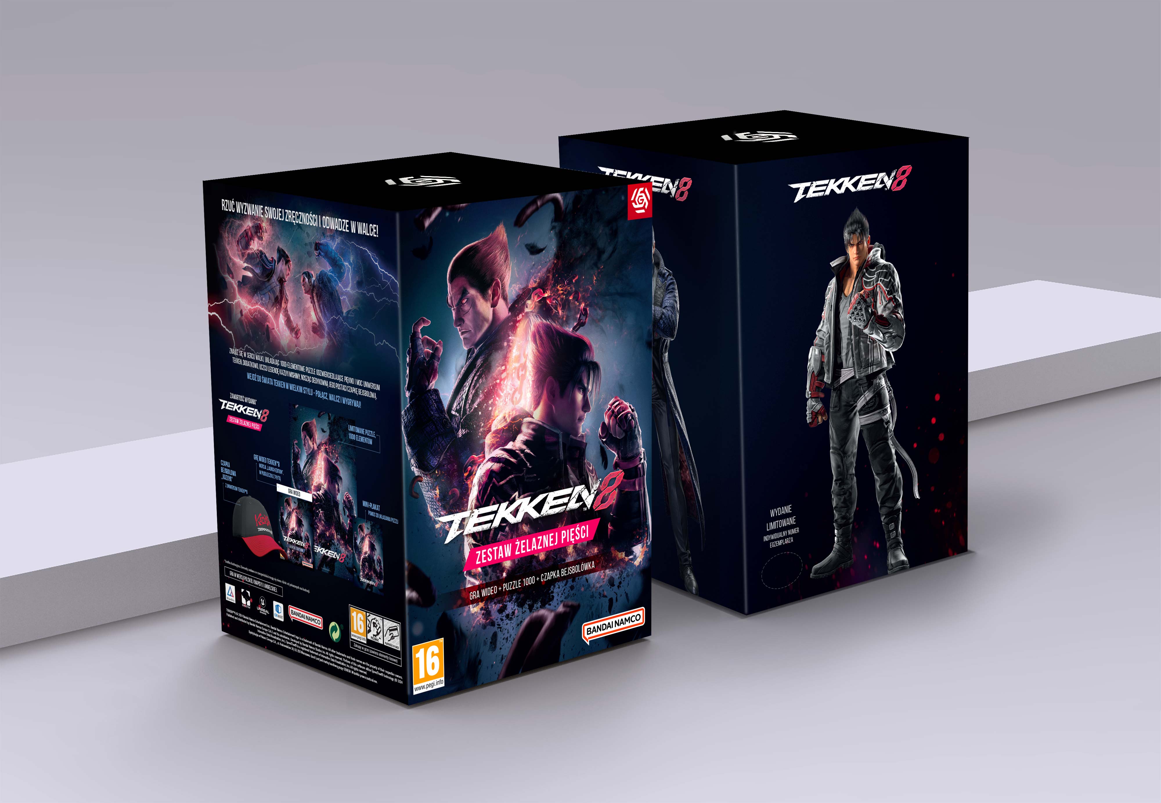 Zestaw Żelaznej Pięści zawiera Edycję Premierową gry Tekken 8, czapkę bejsbolówkę, puzzle (1000 elementów).