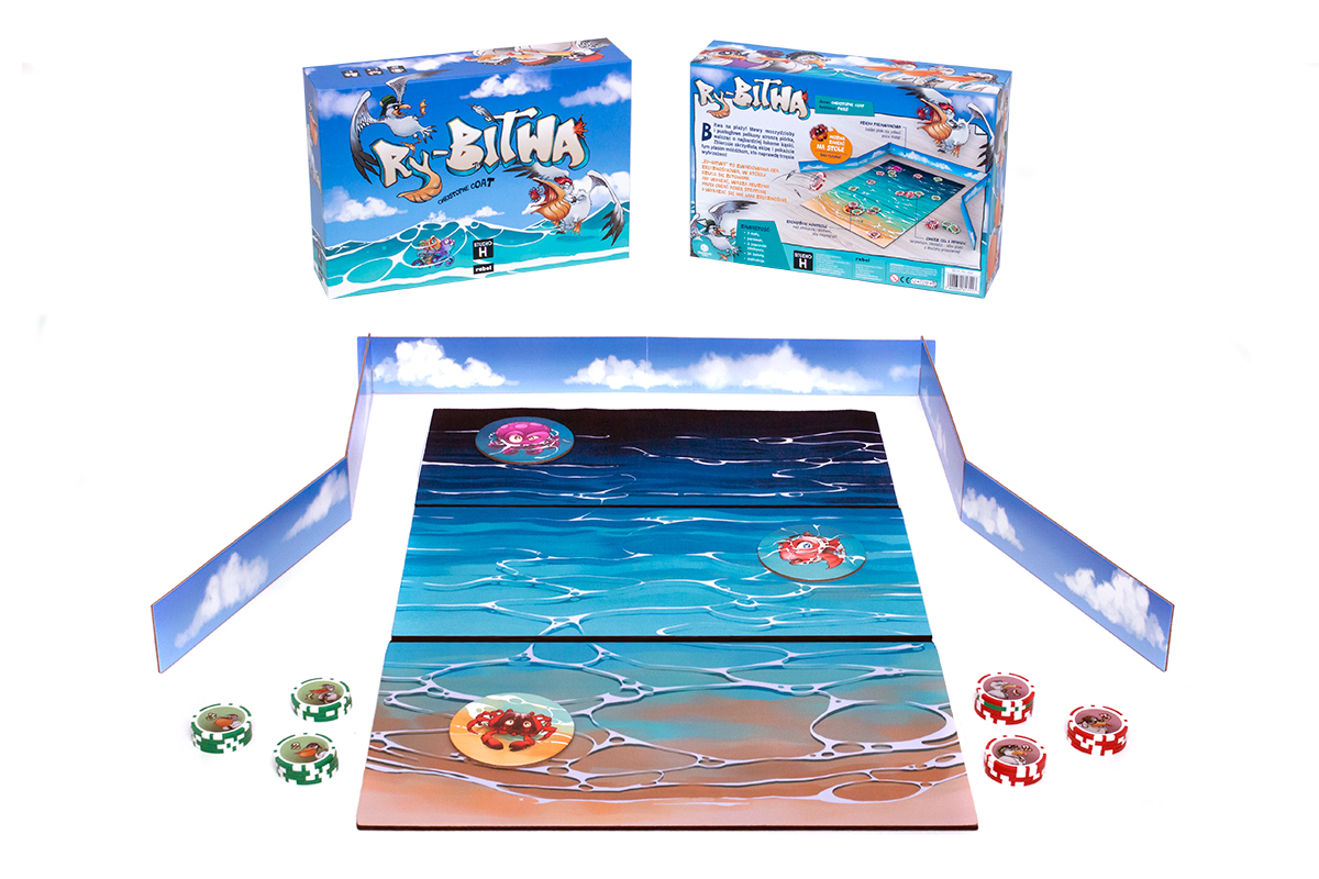 Ry-Bitwa to zwariowana gra rodzinna, w której dwie grupy nadmorskich ptaków rywalizują o najpyszniejsze kąski. Podczas zabawy kolejno rzucamy żetonami na mapę złożoną z trzech stref, próbując trafić w odpowiednie miejsca. Wyznacz cel i atakuj terytoria, zdobycze albo ptaki przeciwników, aby zdobyć kontrolę nad kolejnymi strefami. Jeśli chcesz wygrać, Twoja drużyna musi obrać dobrą strategię i wykazać się nie lada zręcznością!