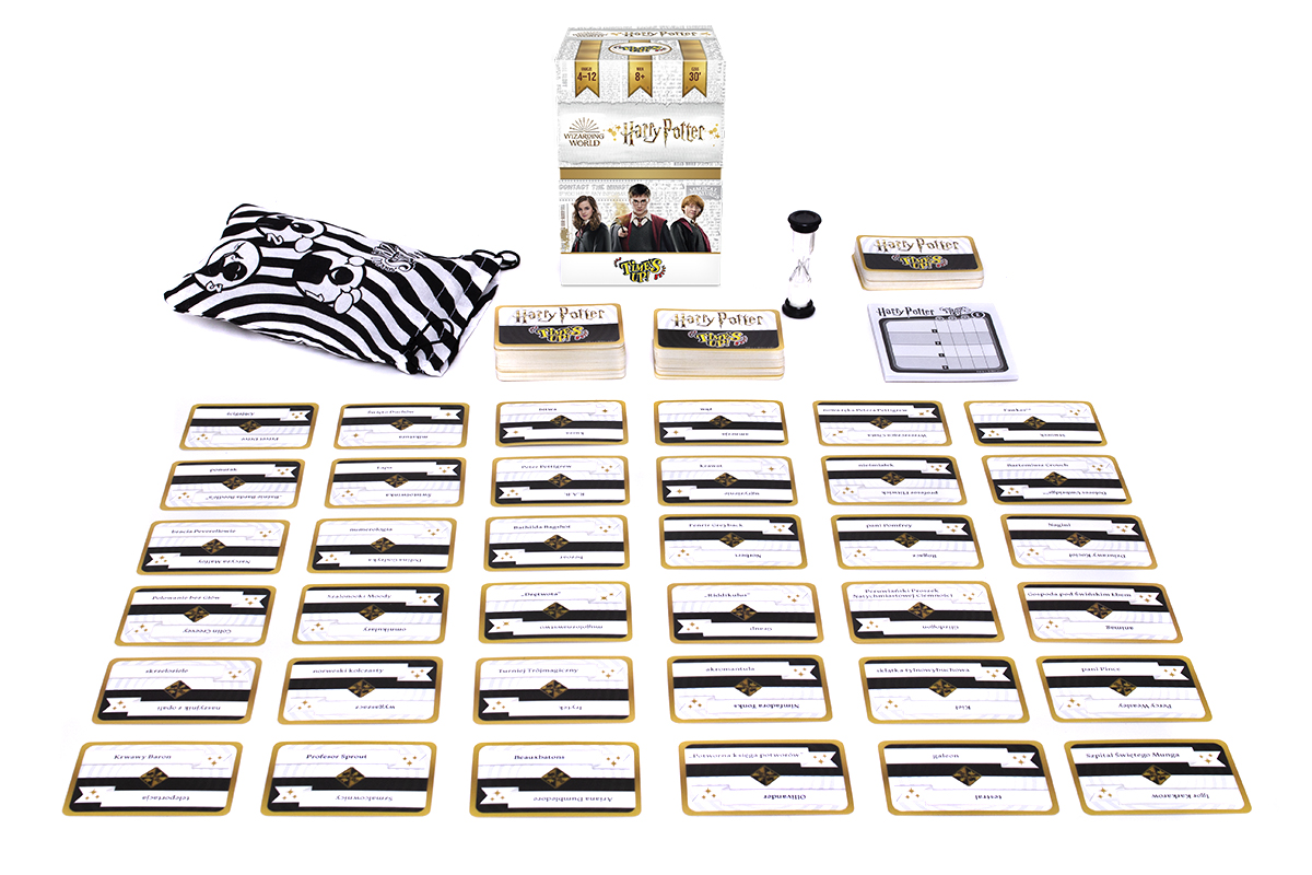 Time's Up! Harry Potter zawiera 440 haseł związanych ze światem małego czarodzieja. Znajdziesz wśród nich znane miejsca i postacie, zaklęcia, stworzenia i przedmioty. Słowem: wszystko to, co jest bliskie sercu każdego fana serii. Dodatkowo gra oferuje aż 3 poziomy trudności („uczeń”, „profesor” oraz „dyrektor”), dzięki czemu możemy ją dopasować do tego, jak dobrze znamy czarodziejski świat.